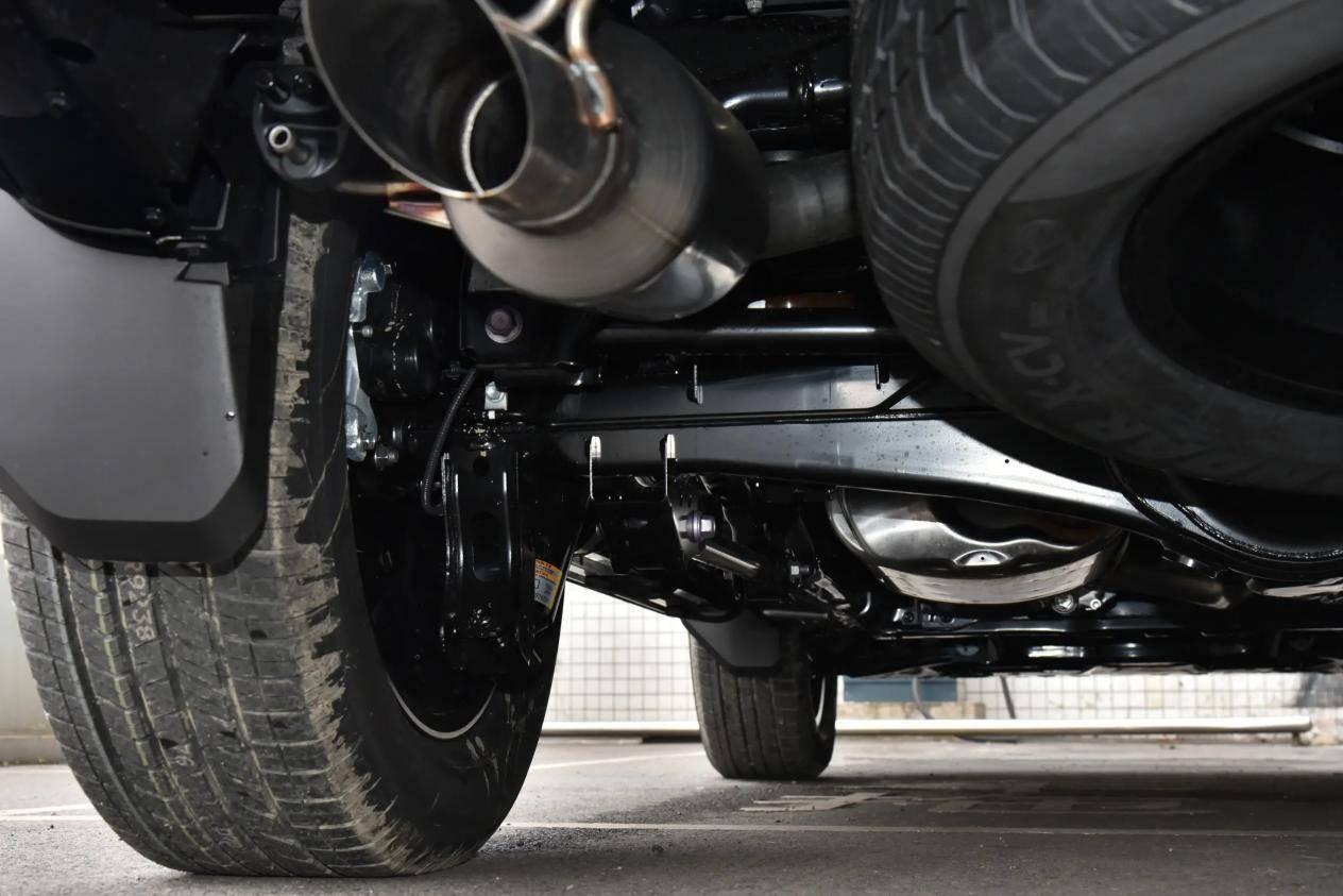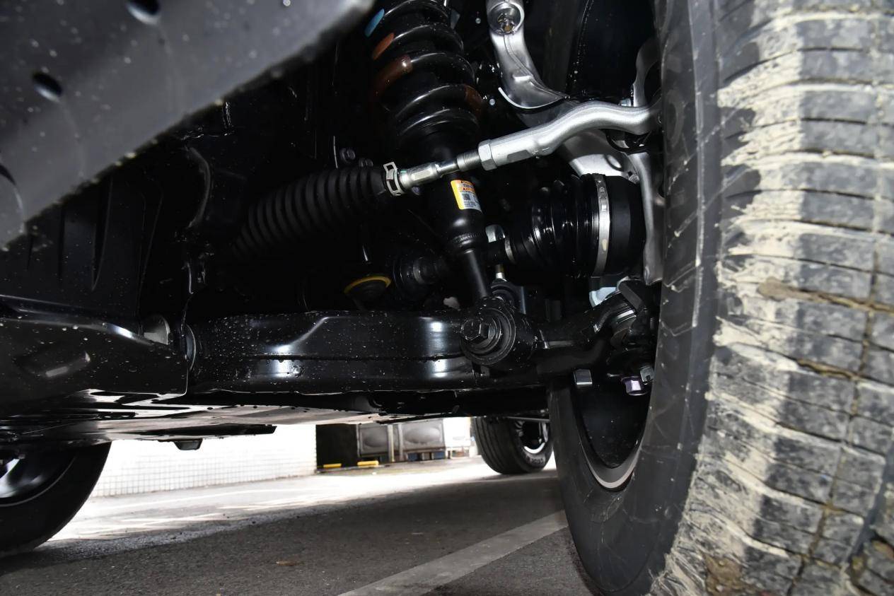 越野性能方面没有打折,还是采用非承载式车身设计,前悬架是双横臂螺旋弹簧独立悬架,后悬架为四连杆螺旋弹簧式非独立悬架,配有托森LSD可锁止中央差速器与托森LSD后桥差速器以及低速四驱模式,这套“双托森”组合可以通过纯机械结构实现动力分配,相比电子限滑系统更可靠,尤其在交叉轴或单侧车轮打滑路况下具备很强的脱困能力,可以快速锁止打滑车轮,分配动力到其他有附着力车轮。