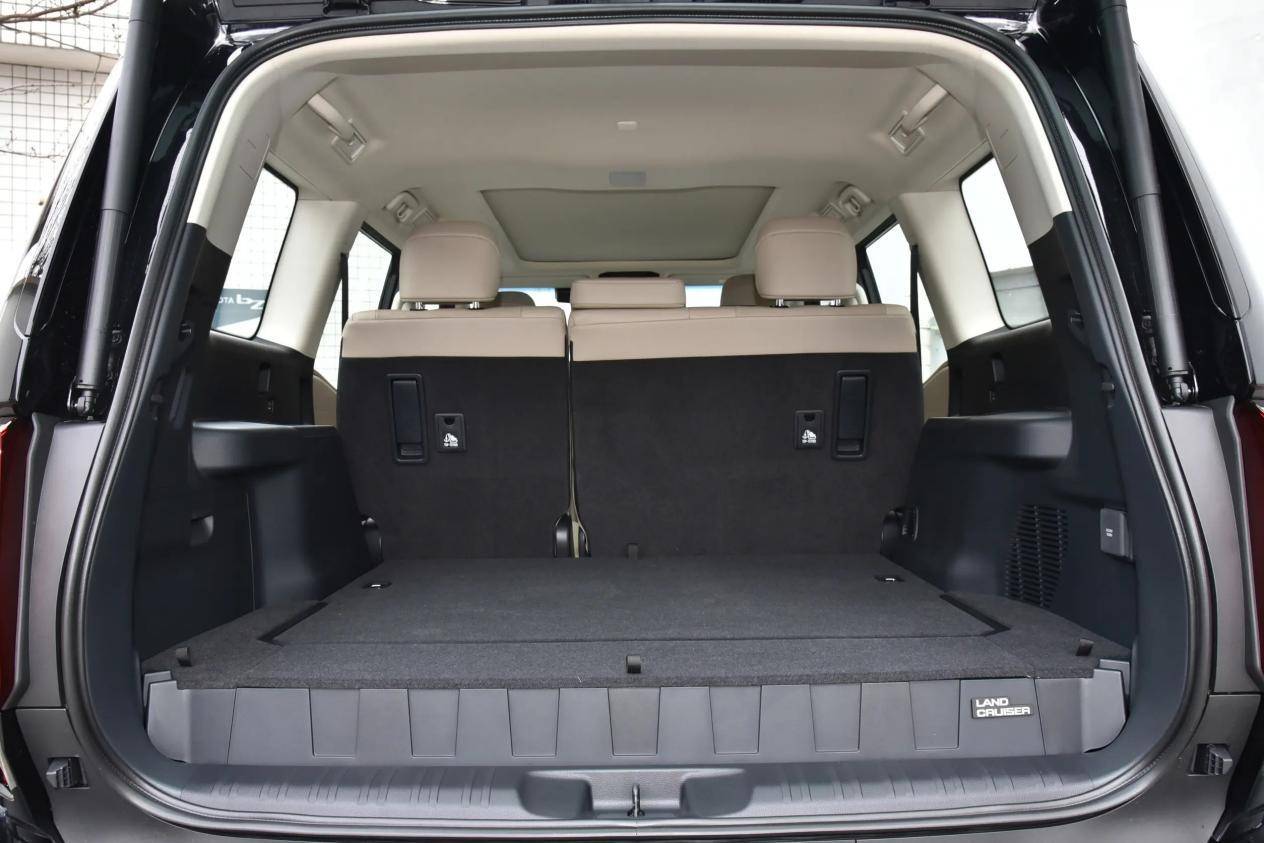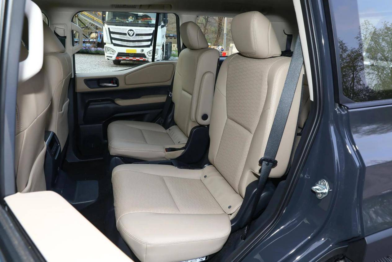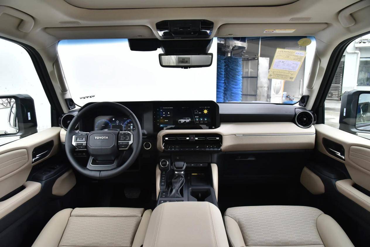 车内还是保持一贯的实用性,保留了大量的机械按键以满足越野用户的操作习惯和增加越野状态下的盲操便利性,同时融入智能化配置,高配车型搭载12.3英寸全液晶仪表与12.3英寸悬浮中控屏,内置高通骁龙8155芯片,支持Carplay、Carlife、HUWWEIHicar无线互联,可以覆盖市面上的大部分手机型号。搭载Toyota Space智慧空间,配备30秒连续多轮对话的语音交互系统,支持连续指令识别、OTA升级等,还有智能管家、智能家居等,支持“人、车、家”无缝衔接。旗舰版车型配备14个扬声器的JBL音响和车载冰箱。